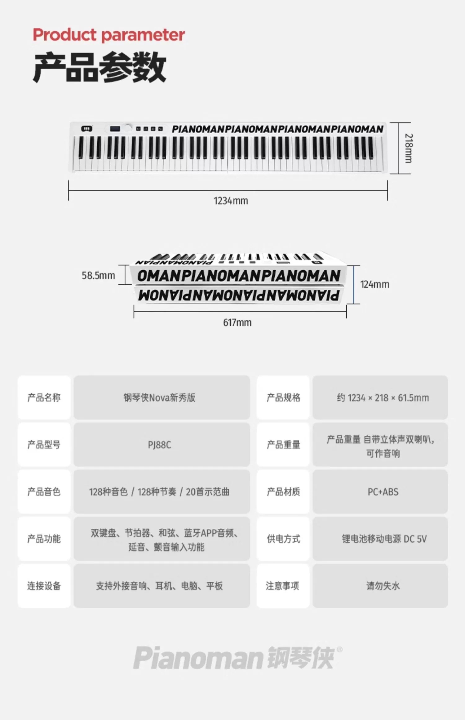 Pianoman 鋼琴俠折疊鋼琴 數位鋼琴 電子琴-林俊傑同款帶藍牙,可充電,便攜式鋼琴,電子鋼琴,數位鋼琴