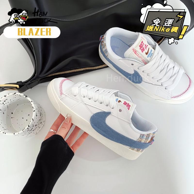 韓國代購 Nike Blazer Low Jumbo 白藍 牛仔帆布 休閒鞋 運動板鞋 女款 FJ7741-141