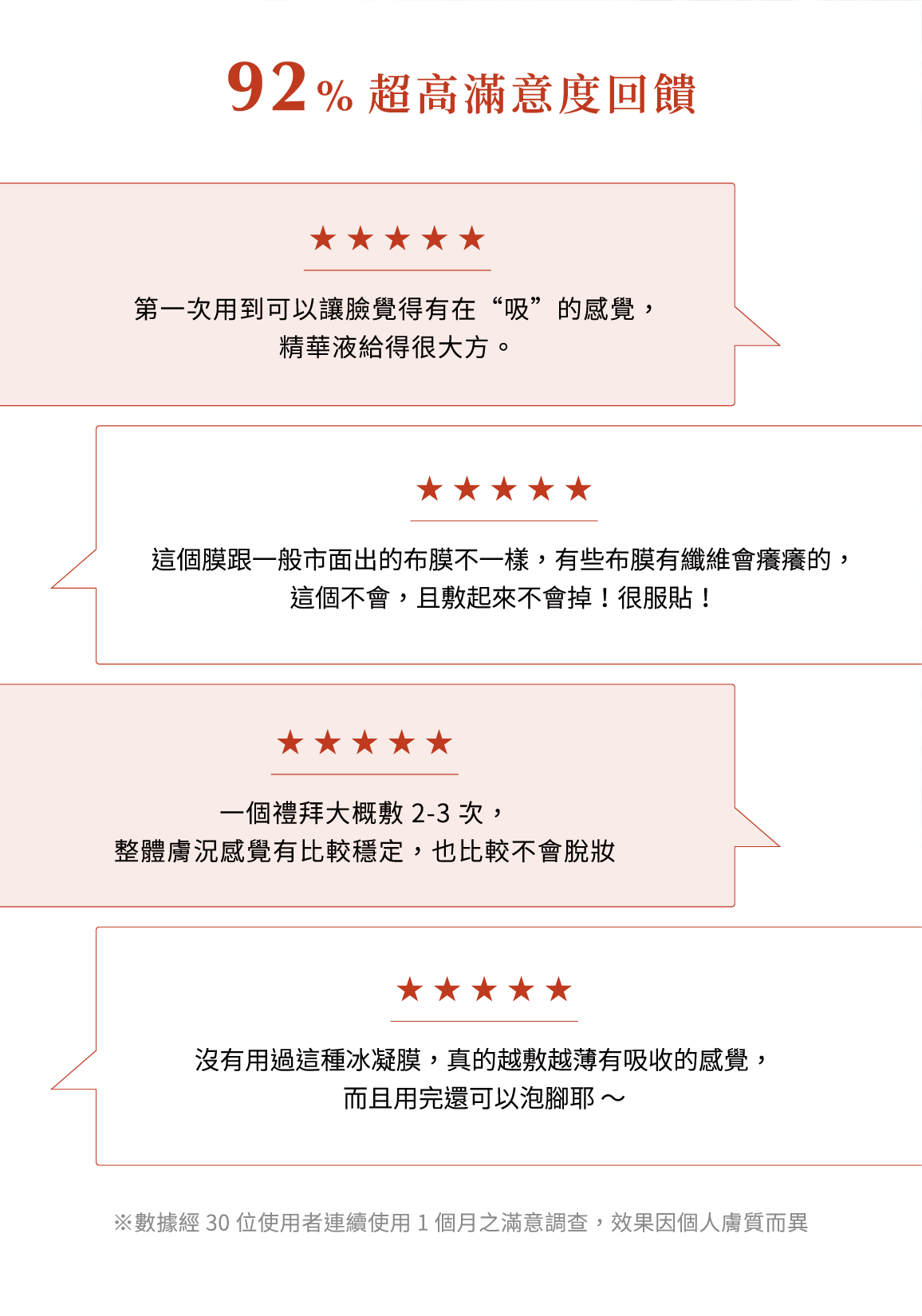 時光姬面膜採用海藻多醣體冷凝技術,完全捨棄面膜布,整片面膜就由精華液製成,具有良好的親膚性並可以促進精華液的吸收與滲透,特殊的技術讓膜體本身具有涼感,特別適合安撫修復的精華配方,使用完畢後還能於溫水中融化,用來泡腳可以將最後的精華充分利用,面膜推薦就用時光姬面膜。