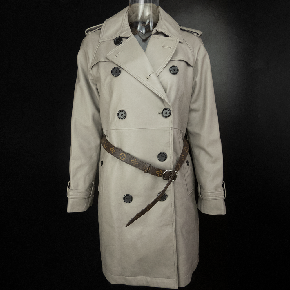 Description:法國精品Louis Vuitton LV 大象灰色小羊皮風衣外套