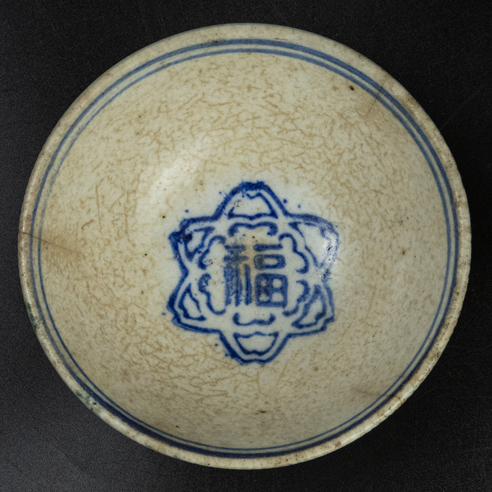 Description:古董福字手繪交織線條陶瓷碗 老碗