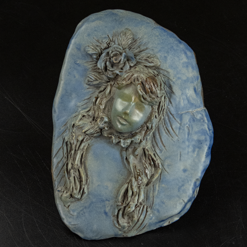 Description:藍色陶土浮雕無臉少女雕刻裝飾陶板
