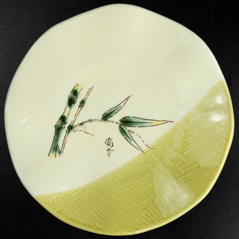 Description:雅竹日式手繪竹子荷葉造型 陶瓷盤 餐盤