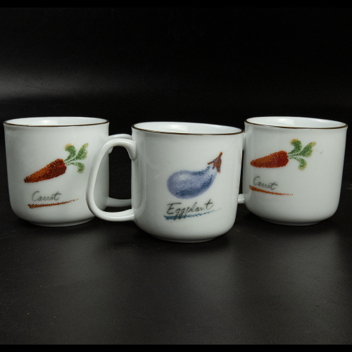 Description:早期日本YUAN FWU 紅蘿蔔 茄子 濃縮咖啡杯 三件一組