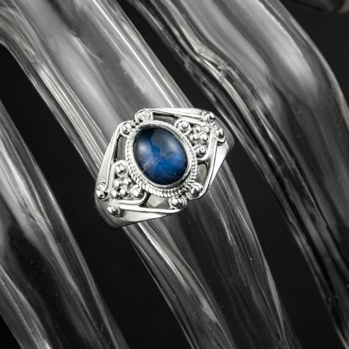 Description:925純銀藍晶石勾花鏤空戒指 #13
