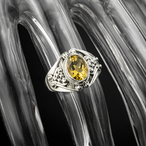 Description:925純銀黃水晶勾花鏤空戒指 #12