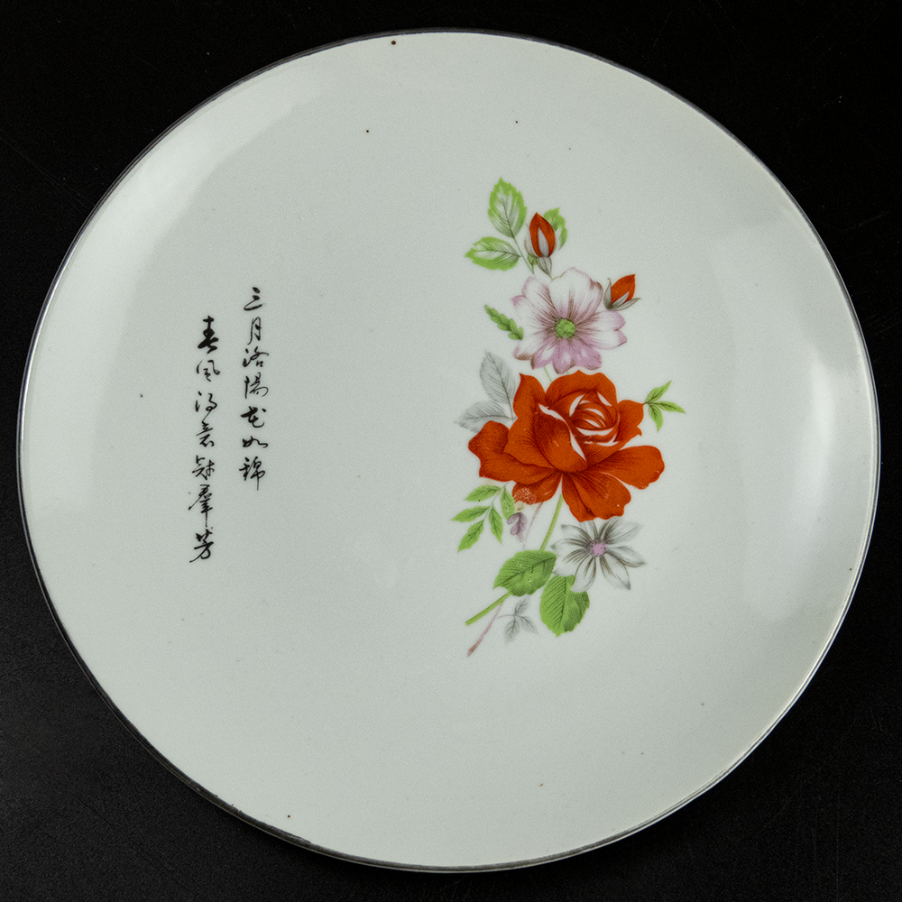Description:大國瓷器 精緻描銀邊 花卉 玫瑰花 瓷盤 盤子