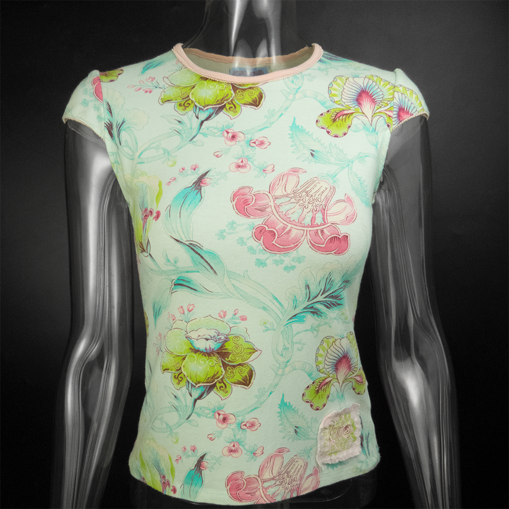 Description:高田賢三Kenzo花草圖騰滾邊短袖上衣