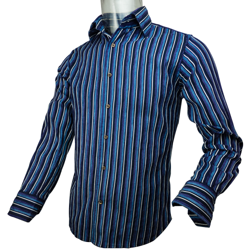 Description:義大利精品ETRO深藍紫色燈芯絨條紋長袖襯衫