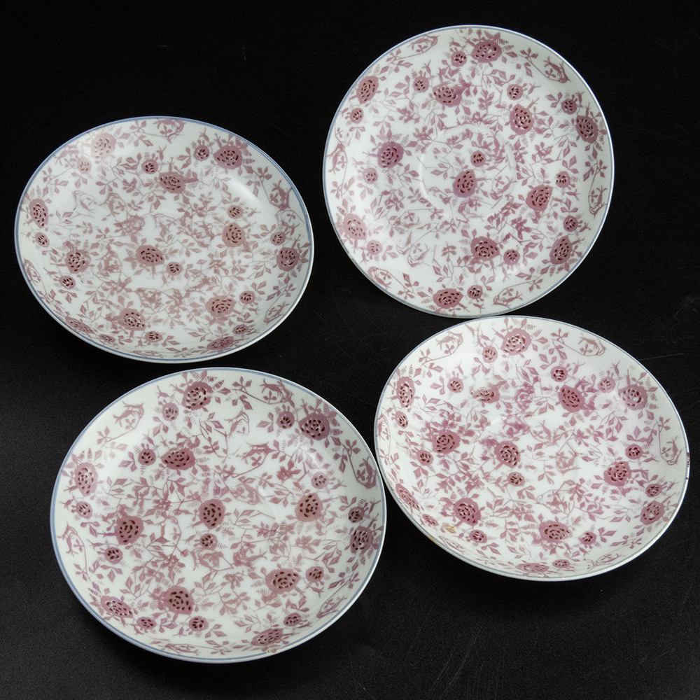 Description:日式硬質瓷器玫瑰花 陶瓷 小碟 咖啡碟 瓷盤 4件一組