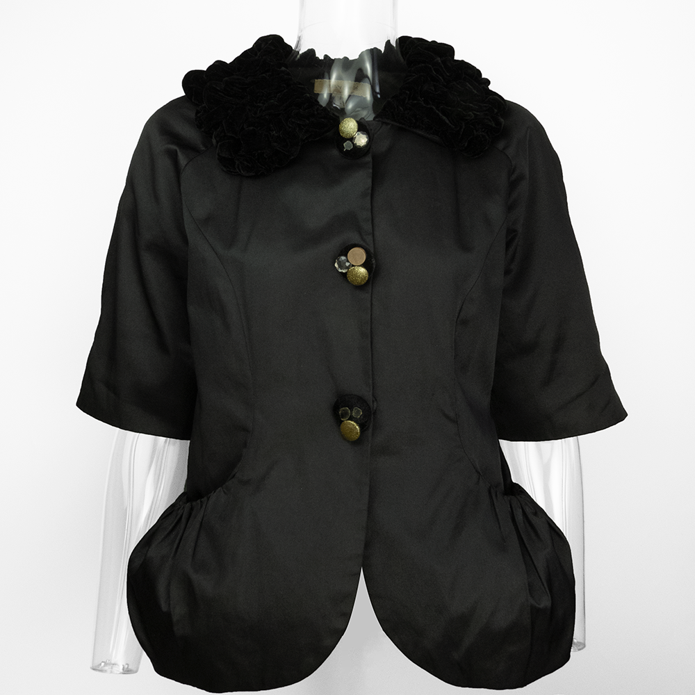 Description:法國品牌See by Chloé黑色天鵝絨抓皺澎澎口袋五分袖外套