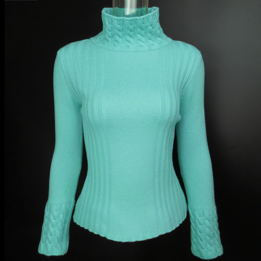 Description:義大利品牌Maria Di Ripabianca美麗諾羊毛湖藍色麻花長袖高領毛衣