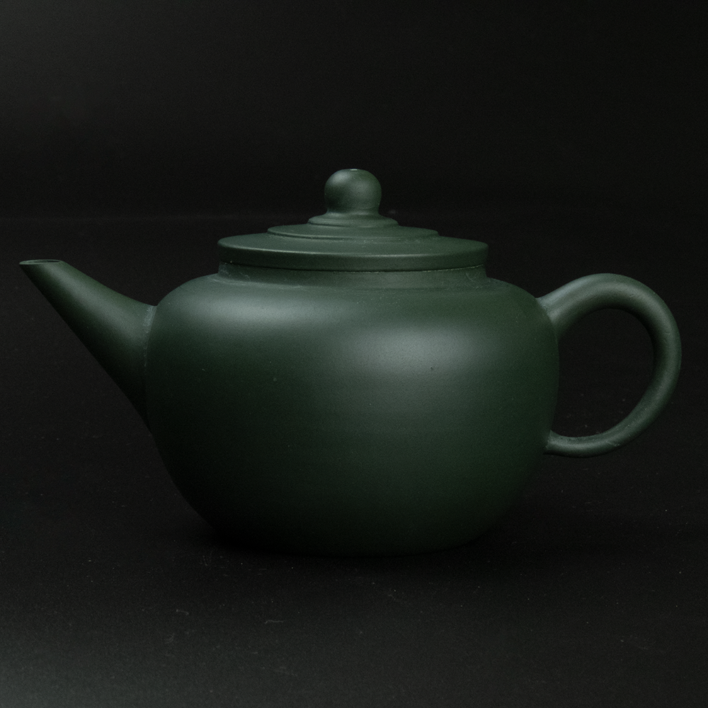 Description:中國宜興貓眼碧綠色紫砂水平壺.西施壺