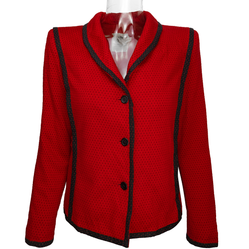Description:日本品牌PARIENNE紅色波點羊毛長袖西裝外套 有墊肩