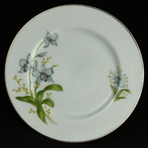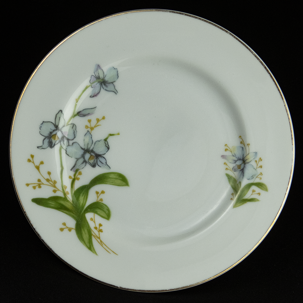 Description:大同瓷器 青藍色 蝴蝶蘭 描金邊 瓷盤 平盤 小碟
