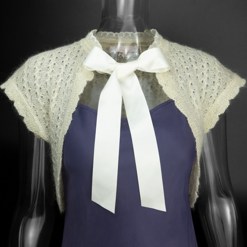 Description:維多利亞的秘密Victoria's Secret米色繫帶蝴蝶結蕾絲拼接金蔥短袖針織外套