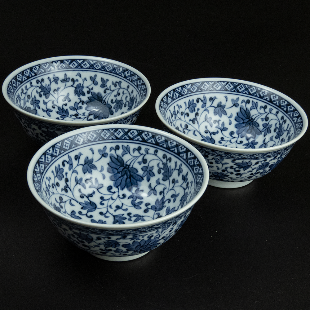 Description:早期 日本 高峰窯藍綠色花草陶瓷碗 中碗