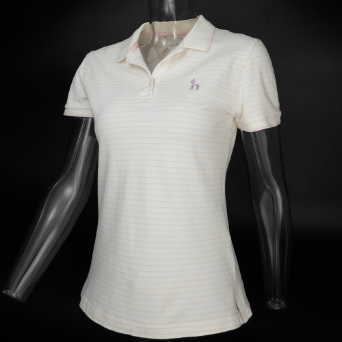 Description:Hazzys 哈吉斯粉紅色線條水鑽小狗短袖 POLO衫