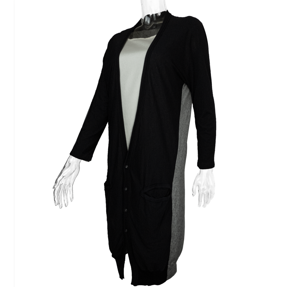 Description:日本設計師品牌Y's山本耀司黑灰拼色九分袖外套 超長