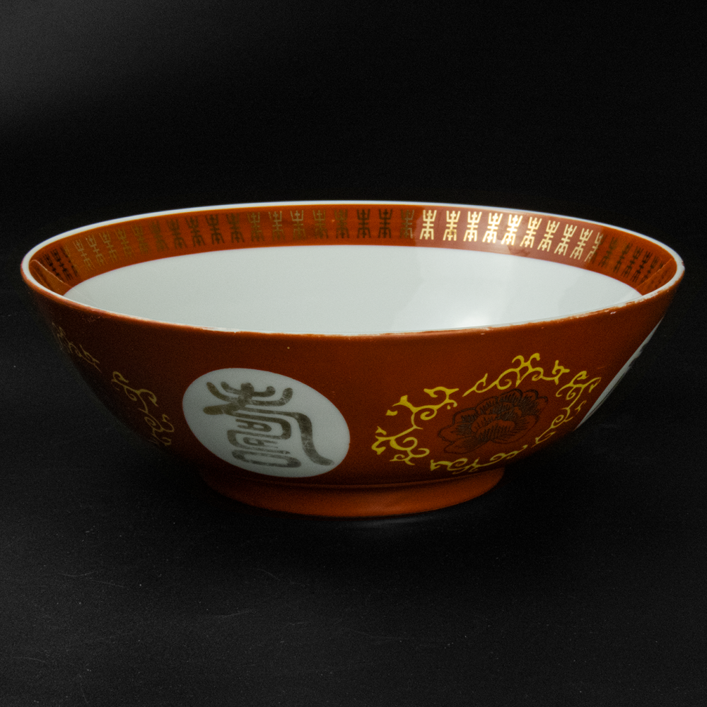 Description:早期 大同瓷器 紅色 紅福壽 萬字 瓷碗 大碗公 大盆 超大