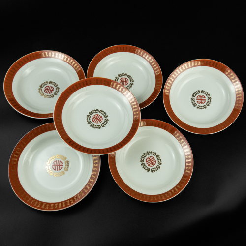 Description:早期 大同瓷器 紅色 紅福壽 萬字 瓷盤 中盤 深盤
