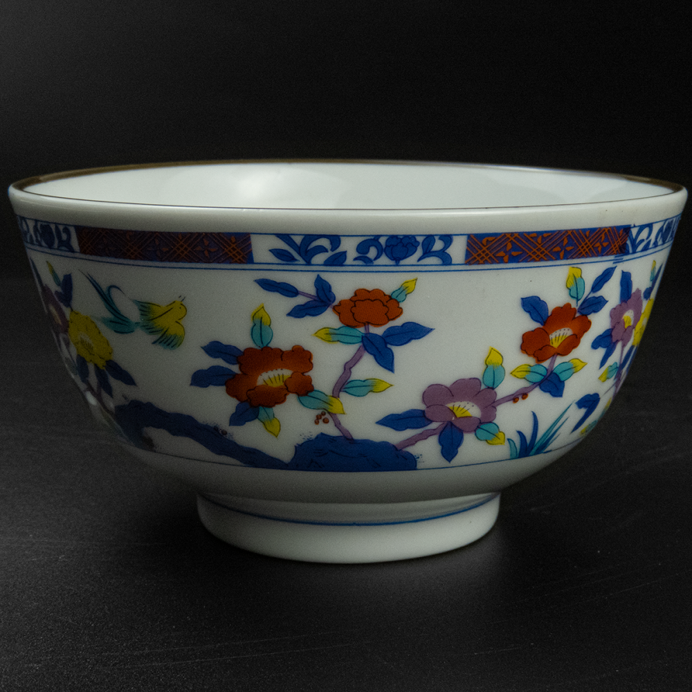 Description:日本 古伊萬里 黑窯 山茶花 花鳥 圖騰 陶瓷碗 湯碗