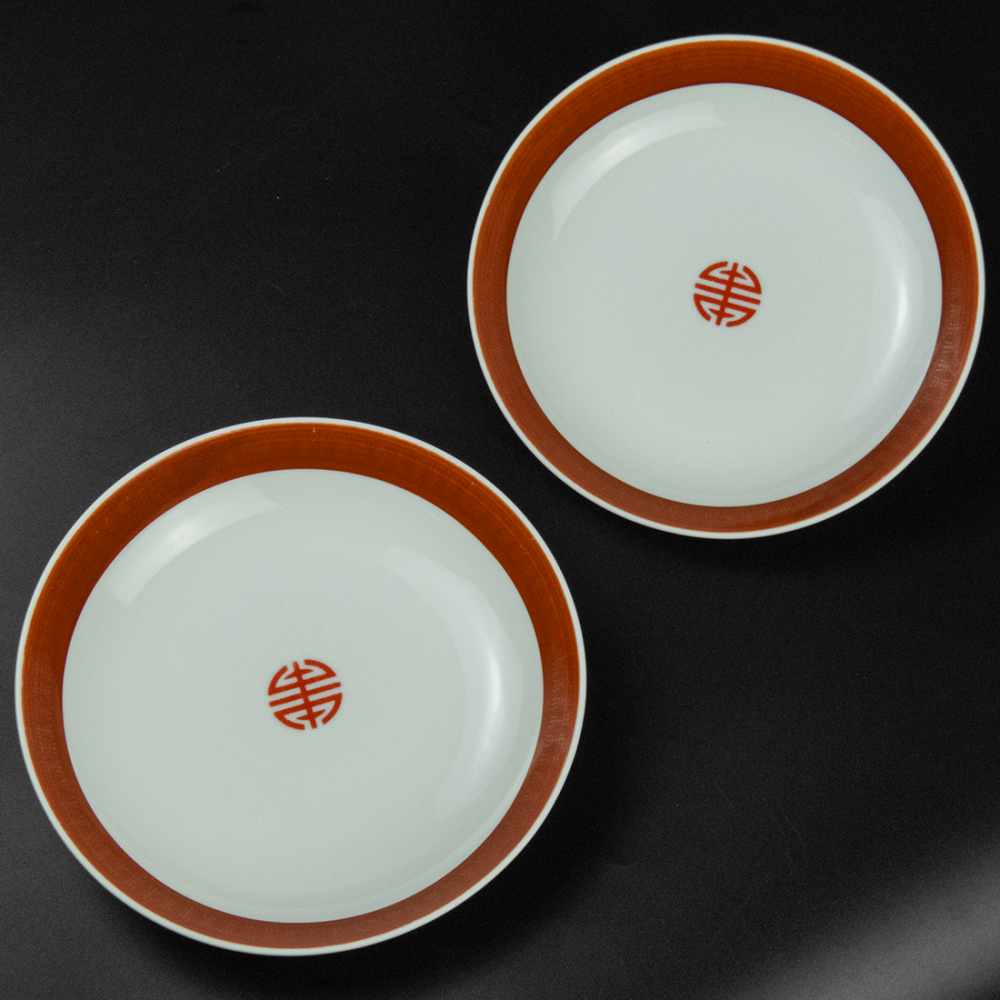 Description:大同瓷器 紅色 萬字 瓷盤 深盤 中盤 兩件一組