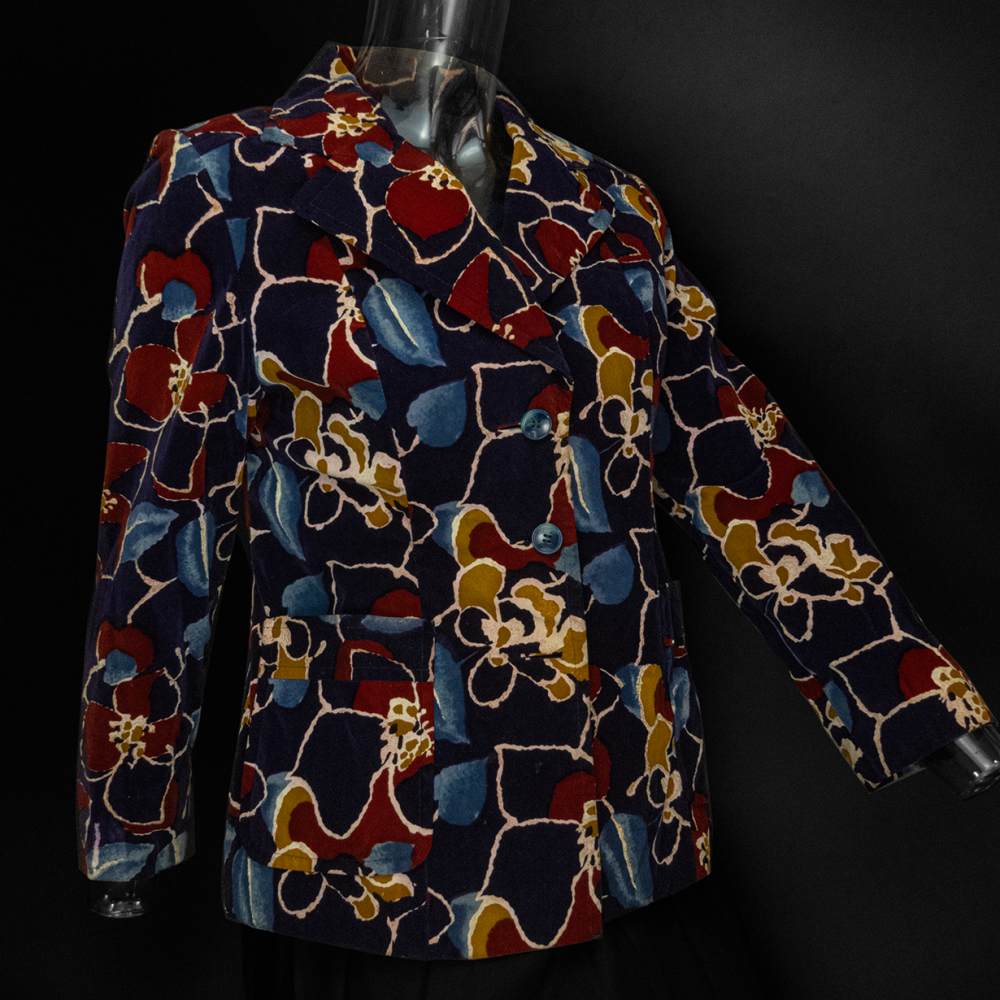 Description:日本古著仿麂皮薄絨花朵長袖西裝外套 私人訂製