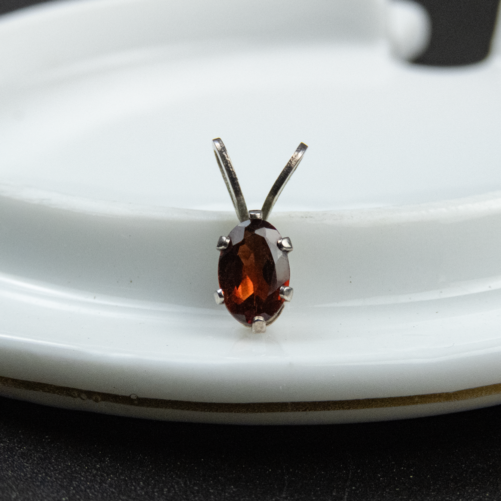 Description:925 純銀 六爪鑲嵌貓眼形狀橙紅色寶石墬子