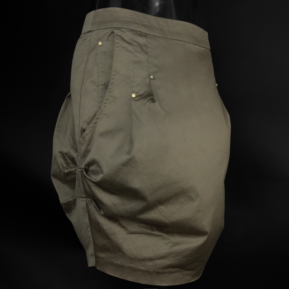 Description:義大利知名品牌ANNA RITA N深橄欖色水鑽鉚釘抓褶及膝裙