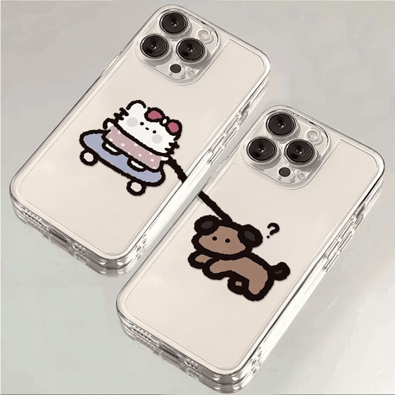 牽繩滑板kt小狗蘋果16/15promax手機殼iPhone14/13情侶12新11軟xs(ai-chan)