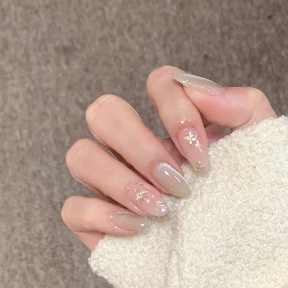 瓷白貓眼手工穿戴甲短款ins法式(music note)