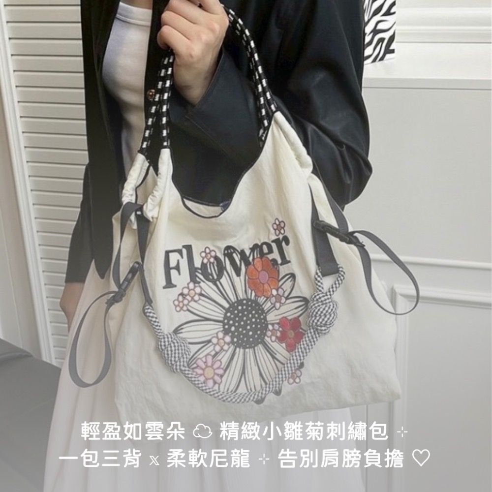 小雛菊刺繡三用尼龍包 ‧ 妳肩膀的最強後盾 🌼☁️