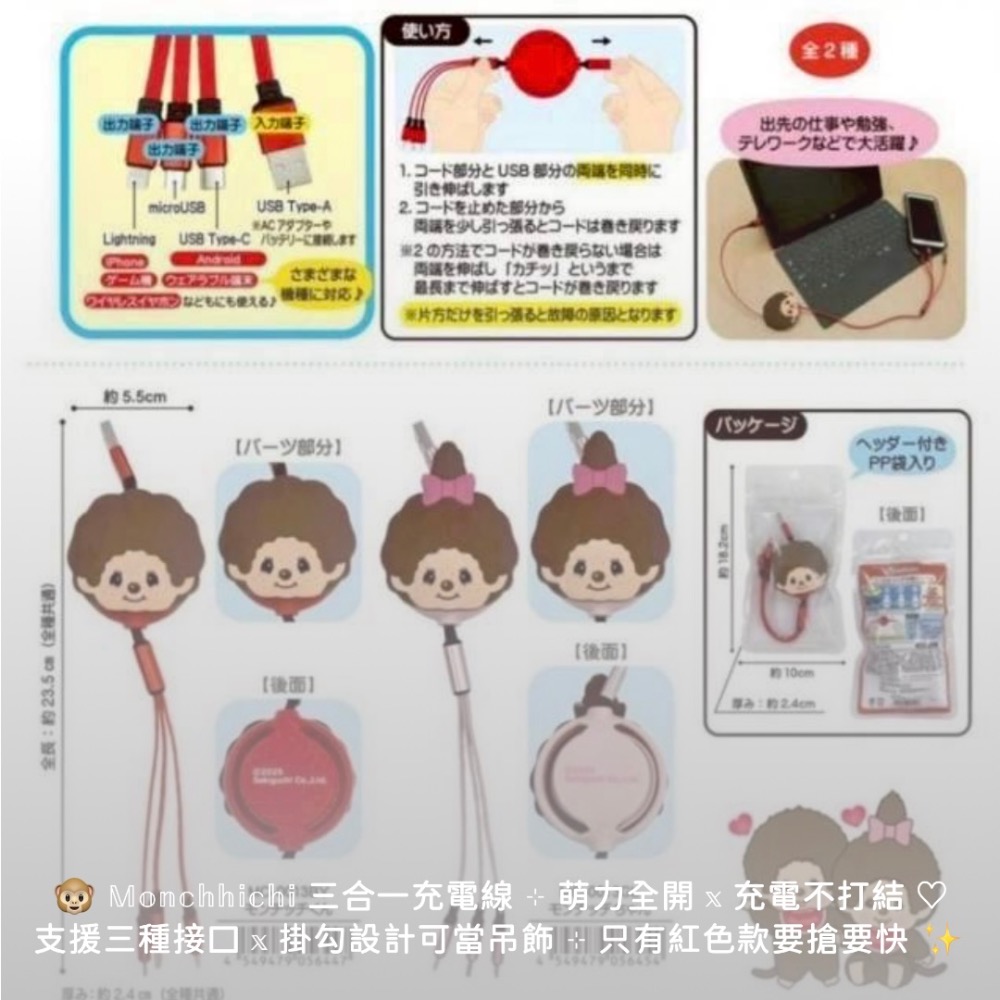 Monchhichi 三合一充電線 ‧ 讓充電也變成一種療癒儀式 🐵🔋✨