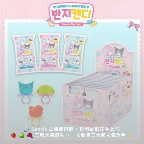韓國最新推出的 「三麗鷗立體戒指糖」 真的是可愛到尖叫~