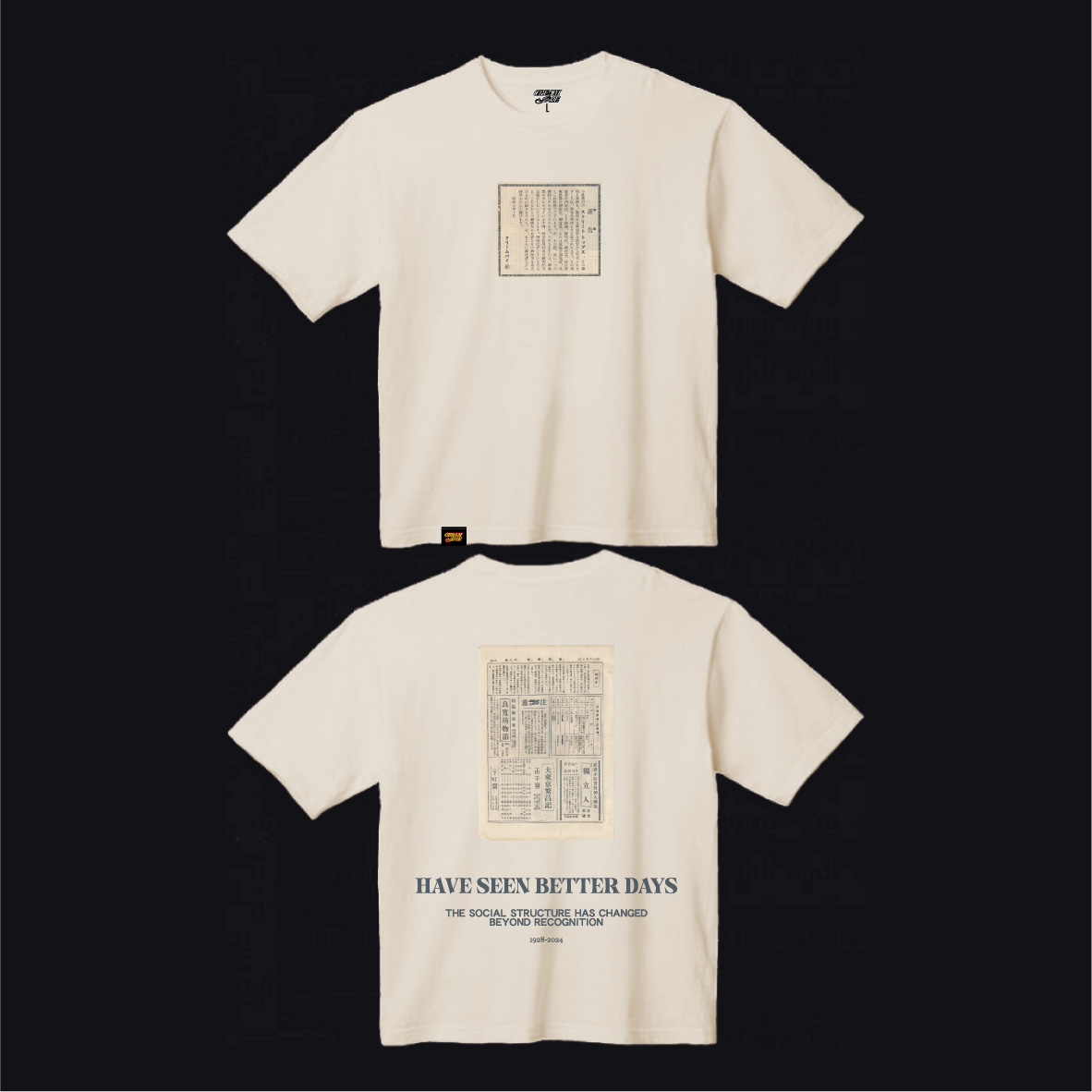 採用實體保存了96年的日治時期舊報紙作為元素,所設計的潮流寬版T恤