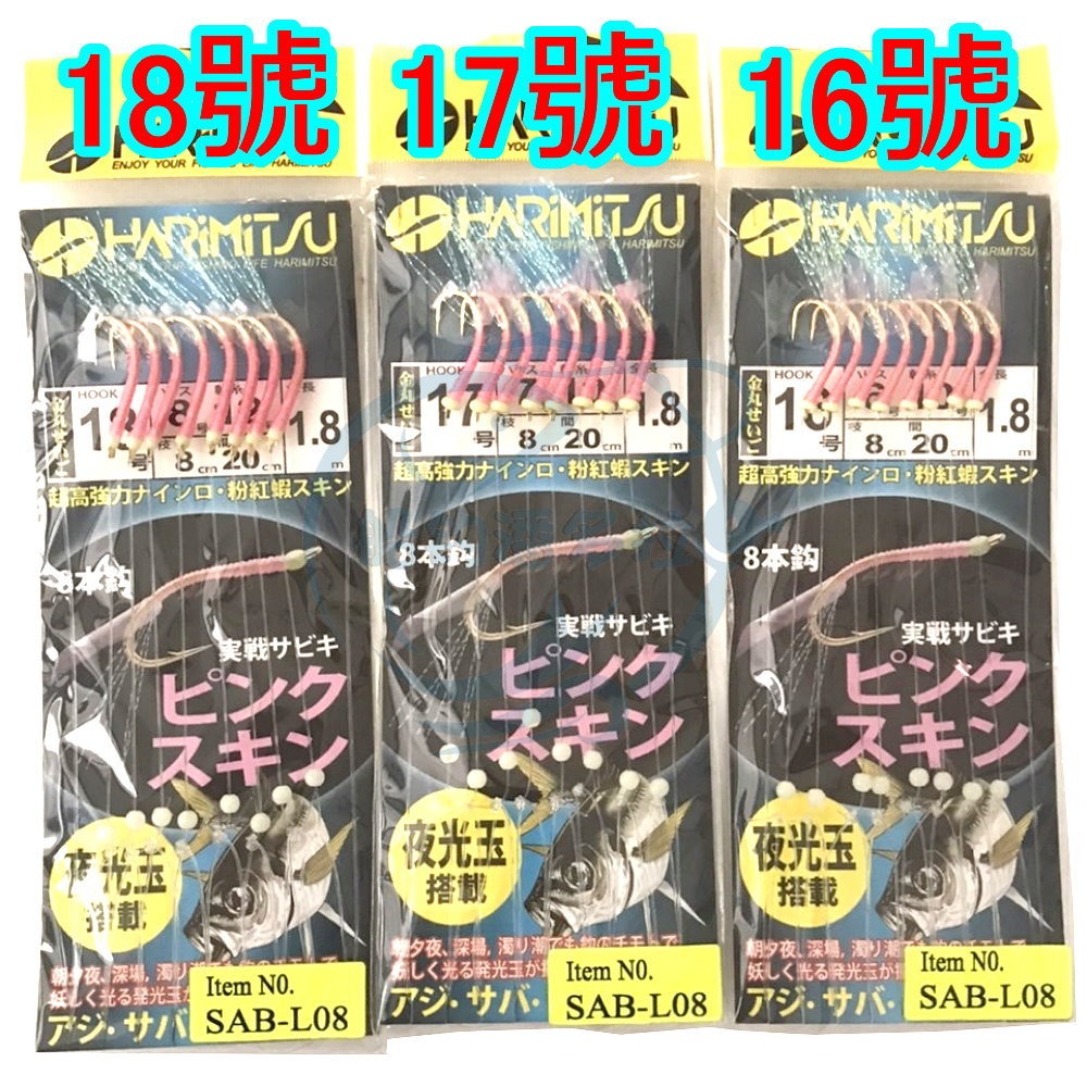 【船釣潘多拉】Harimitsu 丸世鉤+ 粉紅蝦 SAB-L08 船釣仕掛 魚皮假餌仕掛 魚皮仕掛 仕掛釣組 仕掛