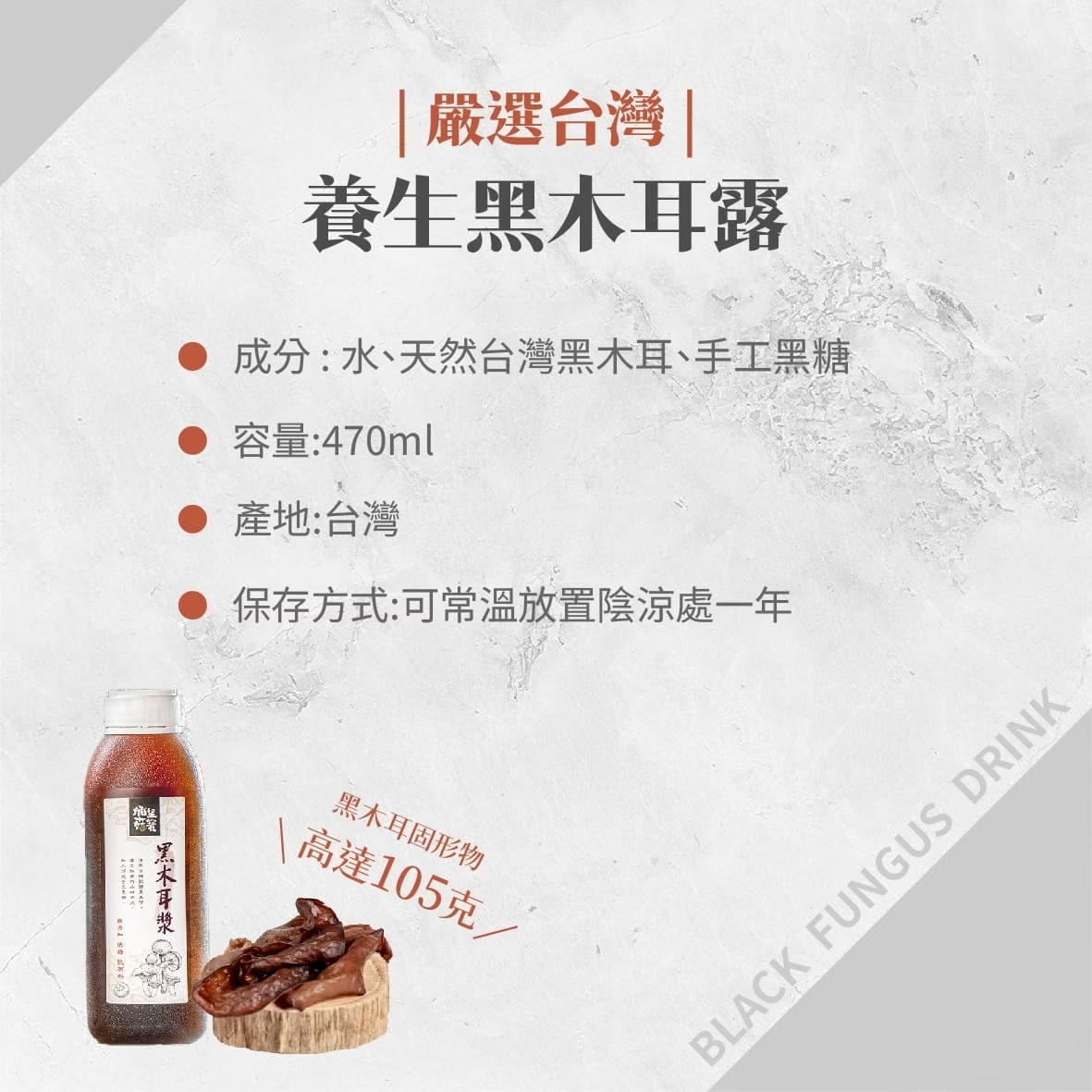 成分:水 白背黑木耳(台灣) 黑糖(台灣)