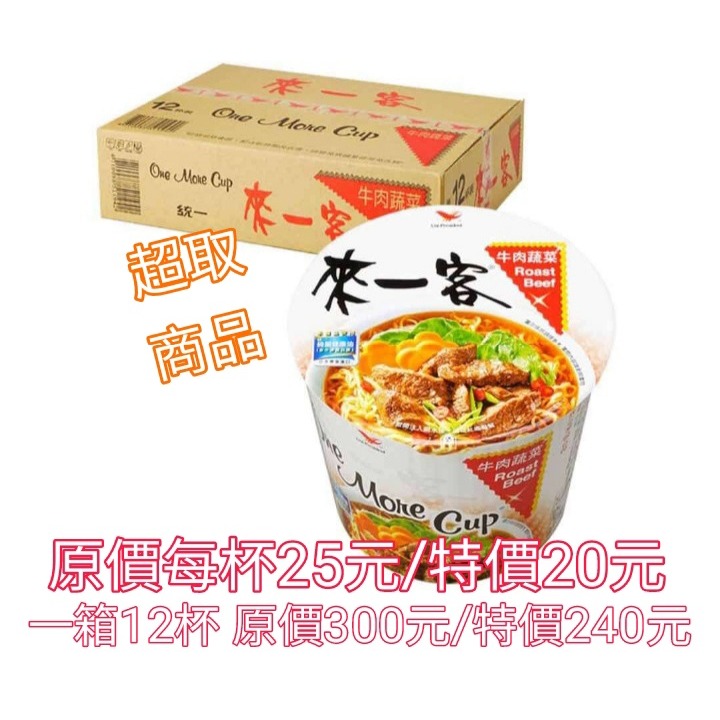 來一客 牛肉蔬菜 泡麵 原價每杯25元/特價20元一箱12杯240元