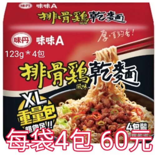 味味a排骨雞麵1袋4包 60元