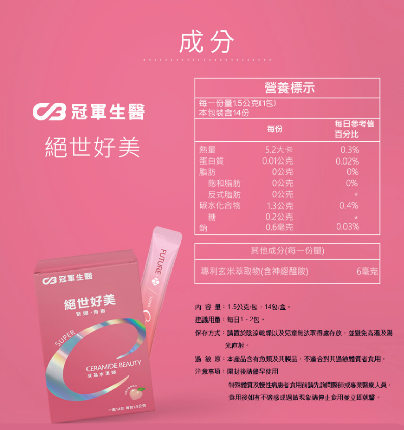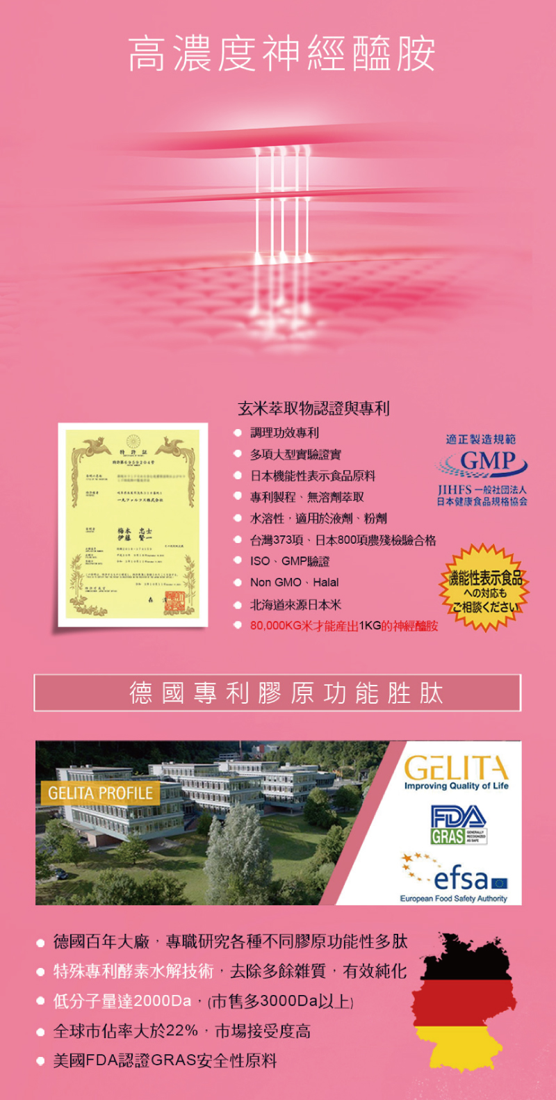 8國9項專利專為美麗姬、敏感姬、重生姬打造雙向作用 青春美麗、養妍美容7天有感、足量添加專利玄米萃取物專利膠原蛋白初戀水蜜桃風味
