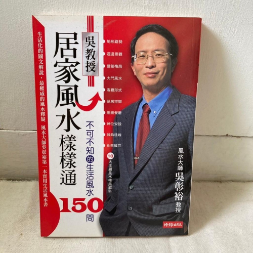 吳教授居家風水樣樣通:不可不知的生活風水150問 作者: 吳彰裕 出版社:時報出版 出版日期:2007/04/26 語言:繁體中文 二手書如圖所示,出售給需要的人,請能接受二手書再購買! 感謝! 家中舊藏書搬家出售,友愛樹木,出售皆酒精擦拭消毒書籍材包裝。 --------------------------------------------------------------------------------------------------------------------------------- 生活化的圖文解說.最權威的風水釋疑 風水大師吳彰裕 第一本實用生活風水書 【地形路勢】【週邊景觀】【建築格局】【大門風水】【客廳形式】 【臥房空間】【廚廁餐廳】【神位安設】【裝飾植栽】【化煞解厄】 10大主題風水格局精闢解析 ■水晶能調節能量和氣場,但沒有化煞招姻緣的作用! ■沒有隔間的獨居套房是「乞丐屋」,會一生困頓! ■客廳天花板挑得太高,會身勞財耗、不得平安! ■床頭一定要靠牆,否則元神和身體都會虛耗! ■家中的財位在廚房和廁所,魚缸和財位完全無關! ■猈貅和聚寶盆只是裝飾用的吉祥物,沒有任何招財功效! ■住家圍牆上爬滿藤蔓,當心招惹官司和口舌是非! ■房屋根本沒有招陰、退運之說,別誤信無稽之談! 你的風水常識正確嗎?或只是道聽途說? 想自我檢測居家空間的風水格局,卻不知從何著手? 風水大師吳彰裕, 根據10大主題格局最常見的150個風水疑難問題, 提供權威、科學的風水鑑定常識與解決方法, 讓讀者能隨時隨地快速檢測、有效運用, 輕鬆營造開運招財、平安納福的居家風水! 作者簡介 【風水大師】吳彰裕 學歷 ◎政治大學政治系 ◎中山大學中山學術研究所碩士 ◎政治大學政治研究所博士 曾任 ◎中央警察大學行政管理系主任、研究所創所所長 ◎中華道教學院五術講座 現任 ◎中央警察大學行政管理系專任副教授 ◎輔仁大學宗教系道教組兼任副教授 ◎四川大學宗教系客座教授 ◎廈門大學宗教所客座教授 ◎江西師大(原中正大學)道教研究中心名譽主任 ◎中央警察大學堪輿社指導老師 經歷 ◎連續五年擔任國家燈會宗教民俗顧問兼主燈安座大典法師 ◎超視「星期天怕怕」風水單元主講人 ◎超視「魯班陽宅學」【魯班風水】單元主講人 ◎超視「風水大開槓」節目主持人 吳彰裕教授是活躍於學術界與媒體界的知名風水地理大師,精通風水鑑定與陰陽五術,經常為國運或社會現象進行觀察預言,並積極從事講學傳播、受邀於各大媒體主講風水理論,廣受迴響與肯定。 吳教授累積數十年研究精華,精心推出風水學經典作品,希望能引領廣大讀者一窺風水學問之堂奧,建立正確、健康的觀念與認知,進而善用這門源遠流長的傳統智慧,為自己打造平安順遂的人生,同時也能福廕子孫。
