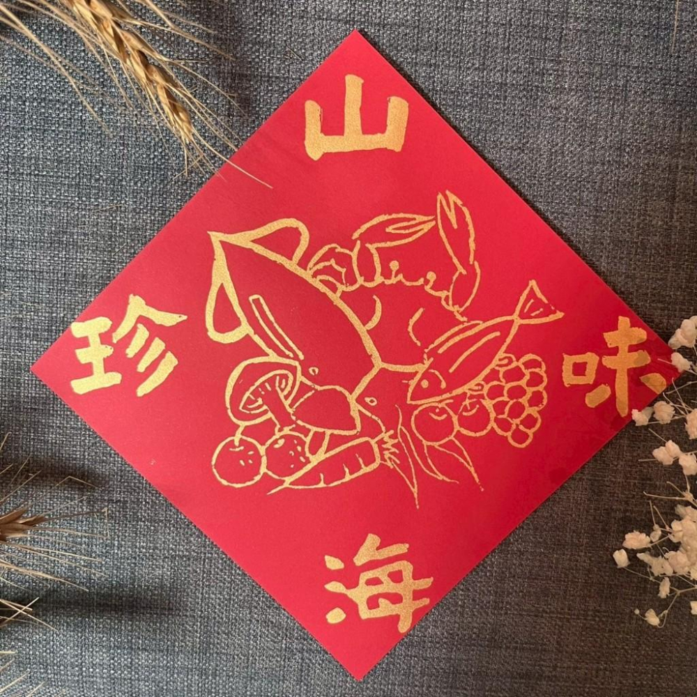 山珍海味 春聯 絹印金墨 冰箱裝飾 米缸裝飾 保佑年年食材庫存豐盛 隸書