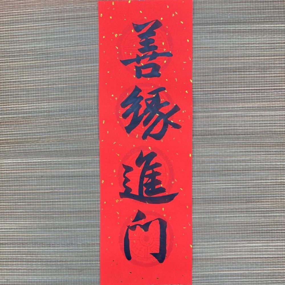 善緣進門 春聯 四字春聯 手寫特色春聯 限量出售 春聯 過年書法 23x68cm