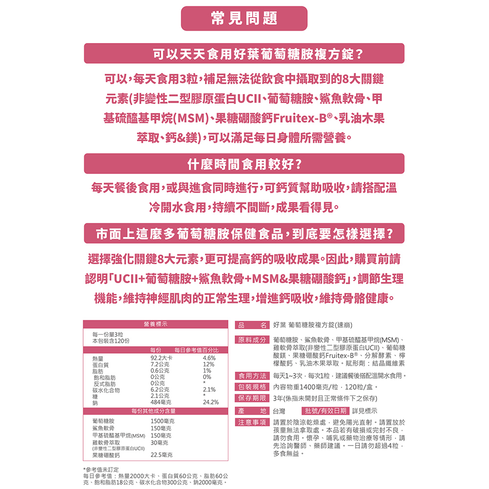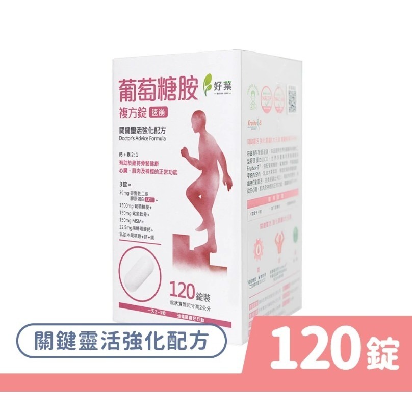 好葉 葡萄糖胺複方錠-速崩 120錠/盒(專利果糖硼酸鈣Fruitex-B☆)