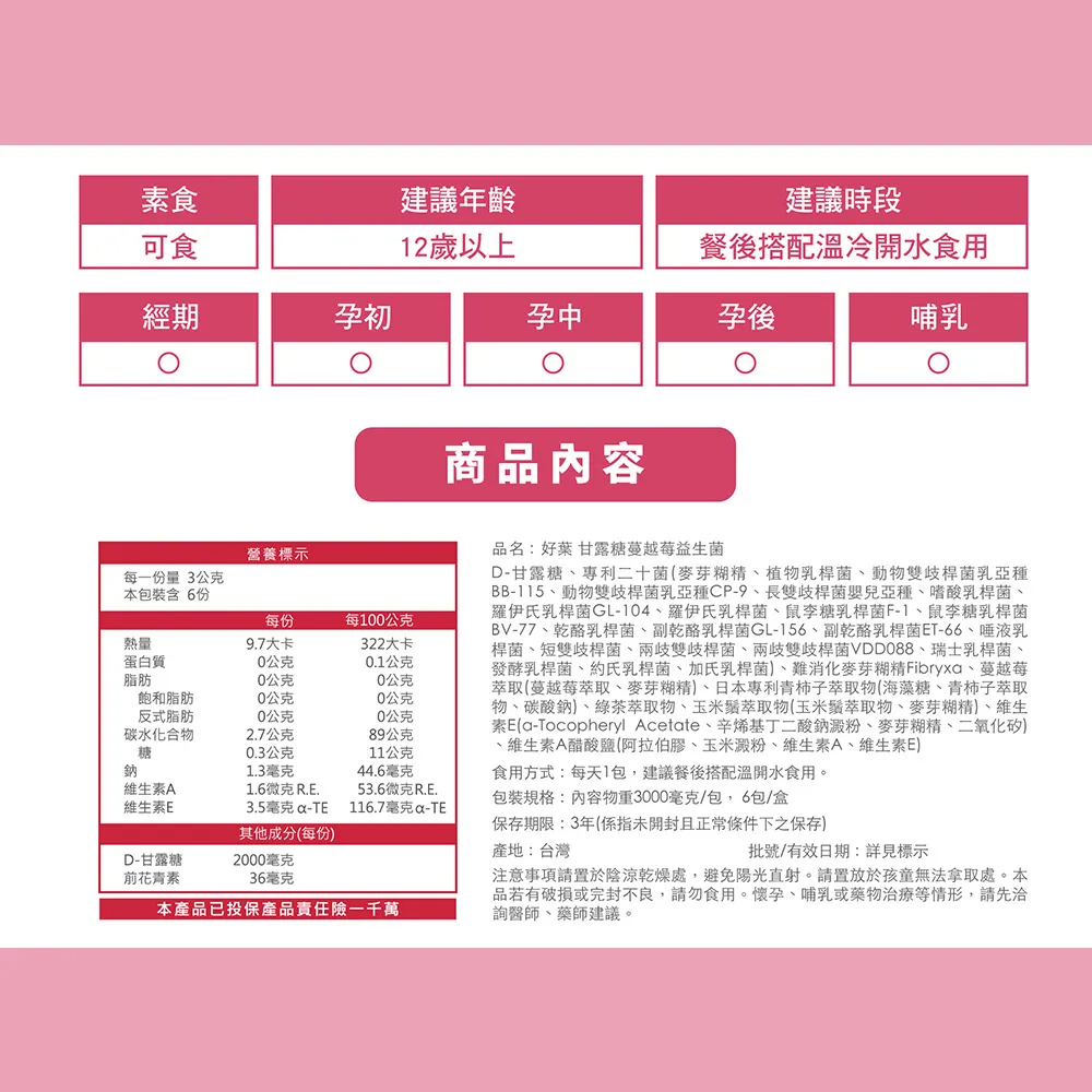 好葉 甘露糖蔓越莓益生菌 3gx6包/盒