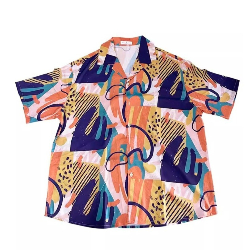 EL CAPITAL 鄉村抽象圖案滿版短袖襯衫 短袖襯衫 花襯衫 滿版圖案 寬鬆 度假風 音樂祭穿搭 街頭 菁英資本