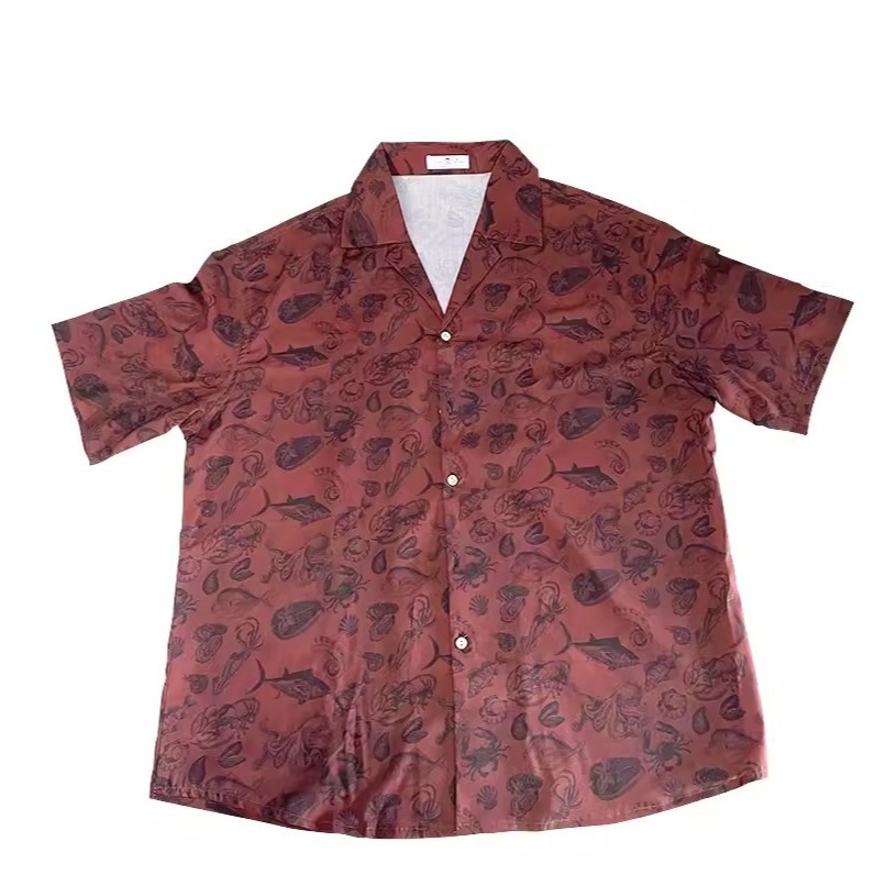 EL CAPITALN 酒紅色水族館短袖襯衫 滿版印花 短袖襯衫 花襯衫 海邊穿搭 度假風 街頭 潮流 菁英資本