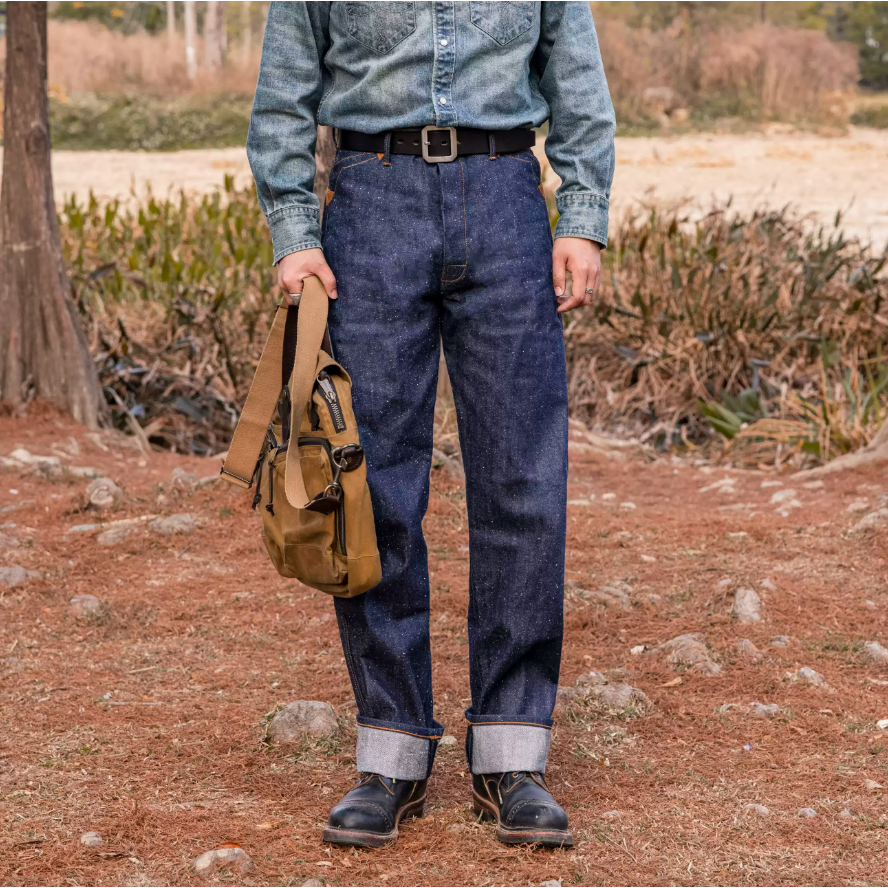 受1873年鉚釘技術啟發,這條褲子在關鍵受力點全部使用進口 頭層牛皮雙層加固(Thread Rip Reinforcement)。三角配皮設計不只是一種風格語彙,更是耐用度的保證。至今現存的古董實物仍可見皮革補強部位毫無破損,這不是傳說,而是歷史本身。