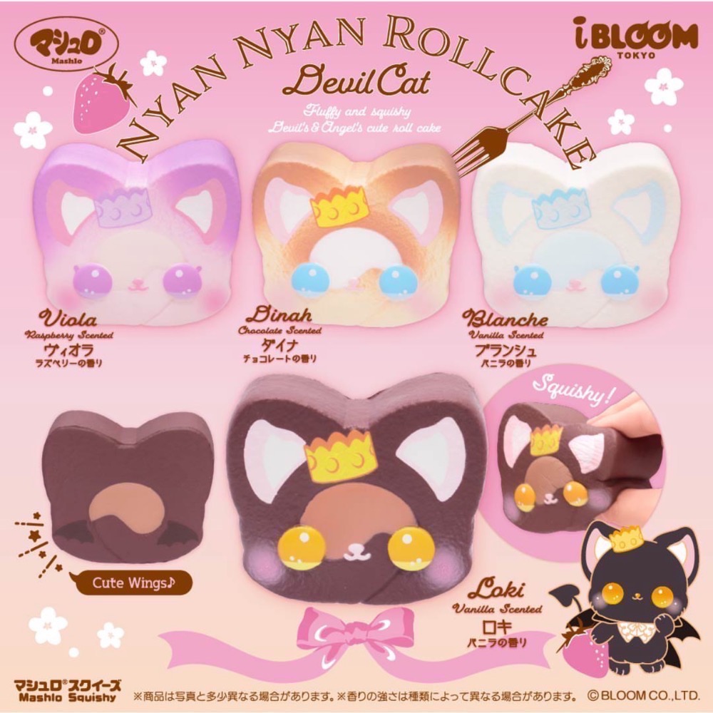 日本 正版 IBloom 可愛角色  惡魔貓 捲蛋糕 SQUISHY